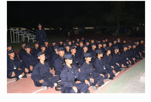 队形整齐,进行夜训